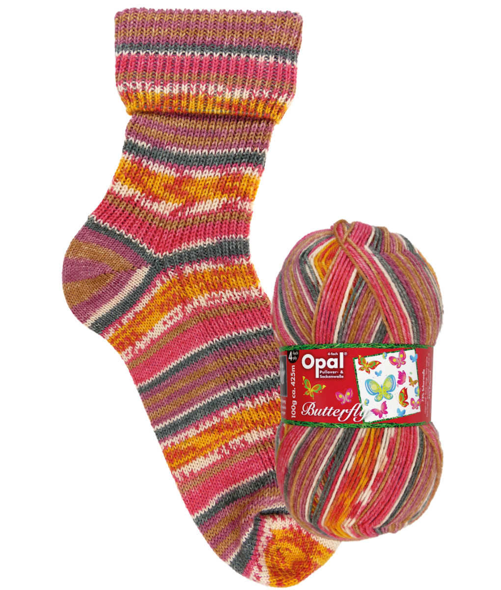This is from the “Butterfly” range of self-patterning coloured Opal sock yarn, first available from us in July 2020.