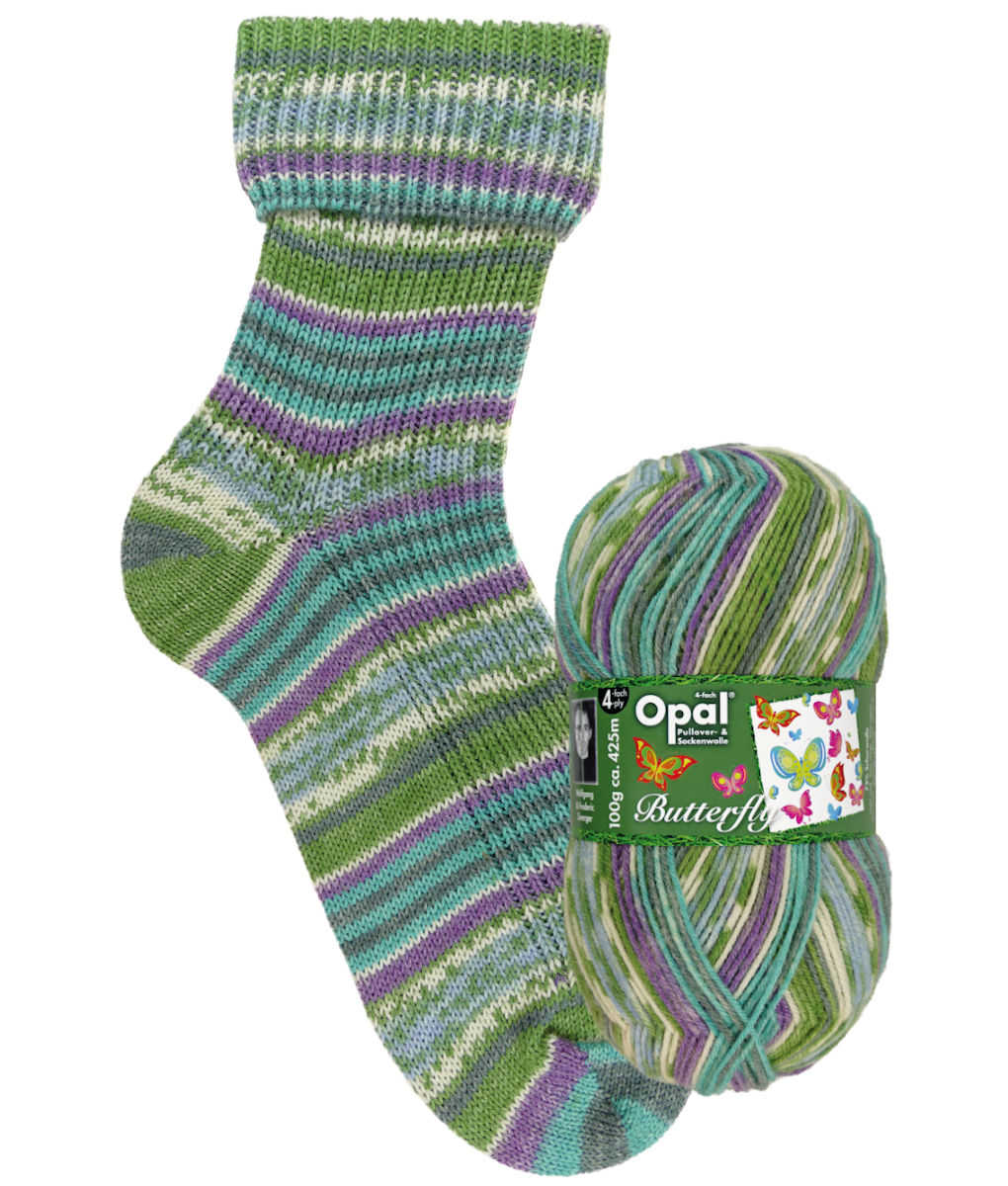 This is from the “Butterfly” range of self-patterning coloured Opal sock yarn, first available from us in July 2020.